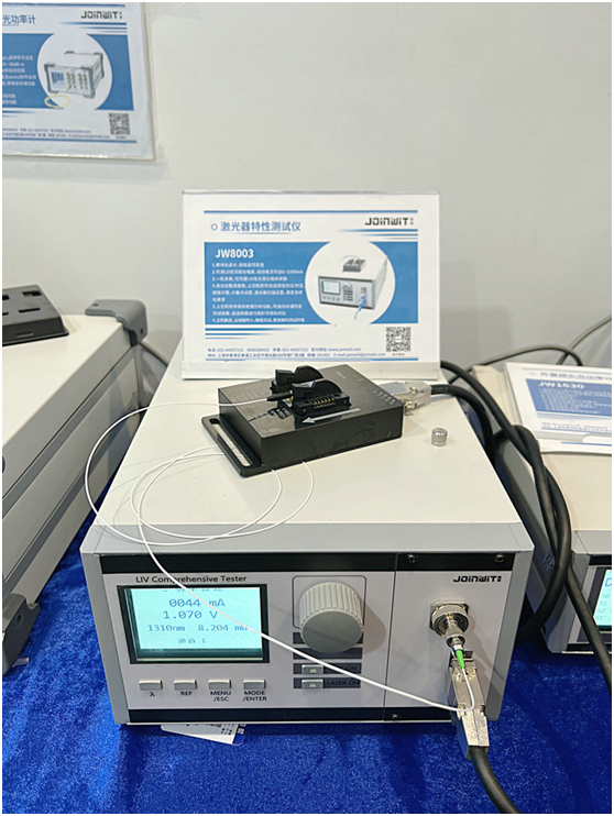 1:偏振消光比測試儀(JW8605J),相較于之前的產(chǎn)品,本次展出的JW8605J偏振消光比測試儀具有:更大的動態(tài)方位PER、更高精準(zhǔn)度及穩(wěn)定性、更快的測試速度、支持保偏光纖光軸角度測試以及一鍵式便捷操作等特點(diǎn)。可應(yīng)用于保偏光纖熔接檢測、Y分值光纖陀螺測試;光學(xué)器件偏振軸對準(zhǔn)、測量保偏光纖消光比、保偏光纖與光源對準(zhǔn)、PM耦合器測試及偏振分束器等場景。