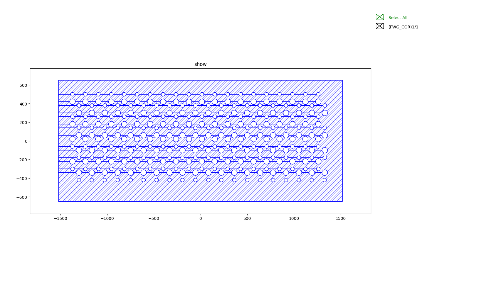 需要注意的是,版圖展示中的尺寸與論文并不一致,論文中的光子晶體參數(shù)設(shè)置與晶格常數(shù)息息相關(guān)。