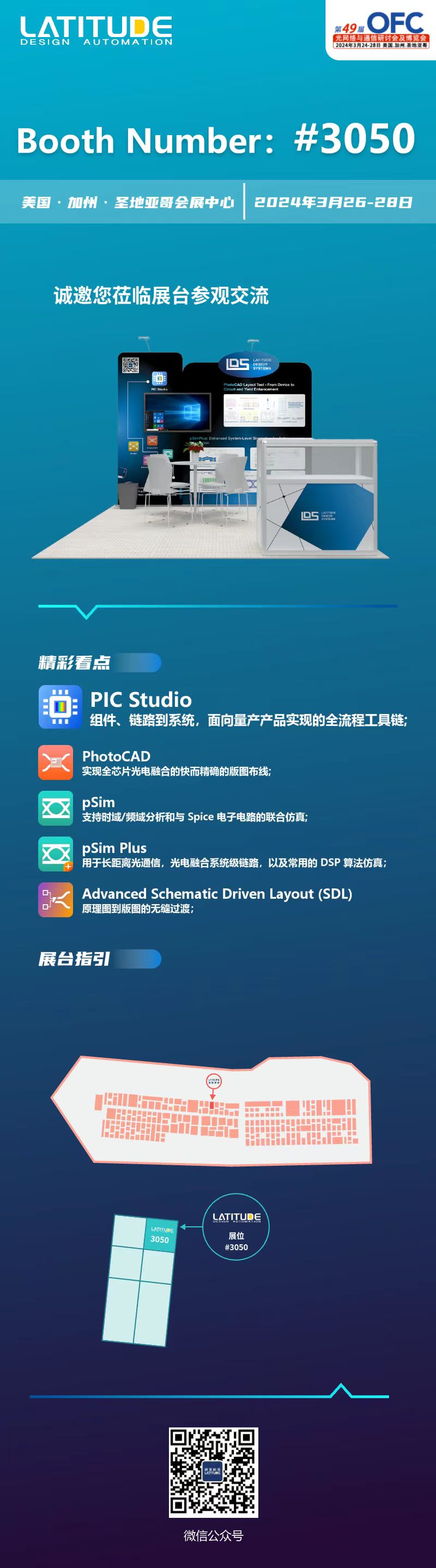 逍遙科技致力于為“特色工藝”半導(dǎo)體芯片設(shè)計提供自動化解決方案,將在本次盛會中展示PIc Studio、PhotoCAD、pSim、pSim Plus、Advanced Schematic Driven Layout (SDL)等創(chuàng)新技術(shù)和解決方案。誠邀您蒞臨#3050,期待您的參觀交流!