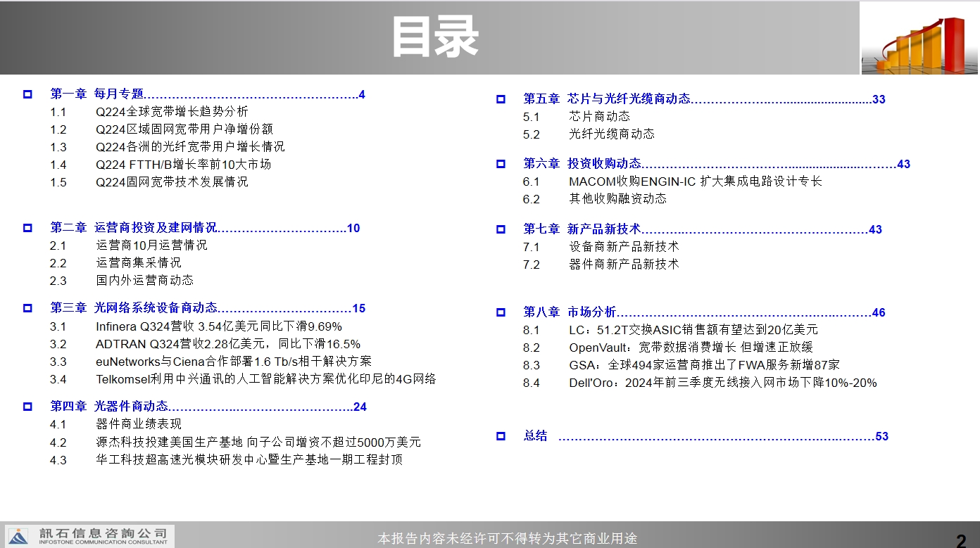 ICC訊 訊石 2024年11月《全球光通訊市場(chǎng)動(dòng)態(tài)》專題月報(bào)出刊,會(huì)員公司可以通過郵件接收。