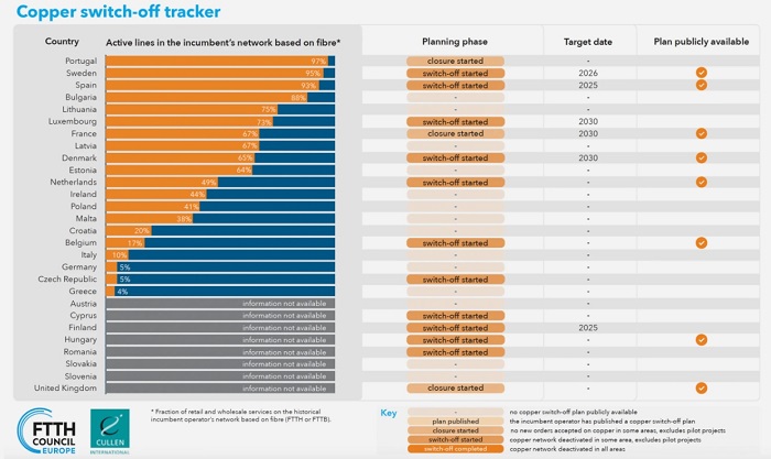如同歐洲的許多事情一樣,淘汰銅線的過程在不同國家以不同的速度進(jìn)行。雖然有些國家走在前面,但許多歐洲運營商在徹底淘汰最后一根銅線之前仍有很長的路要走。