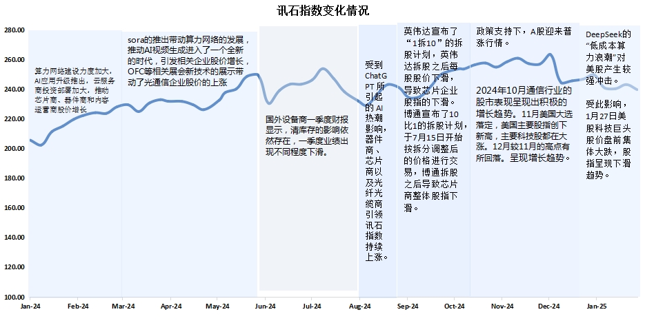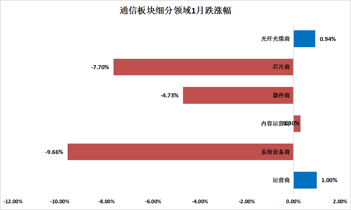 總體來看,1月通信行業(yè)股指呈現(xiàn)先增長后下滑趨勢。股指的波動反應(yīng)了市場對光通信未來發(fā)展的樂觀預(yù)期,也受到短期資金流向和行業(yè)競爭等因素的影響。